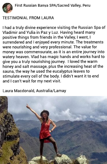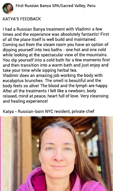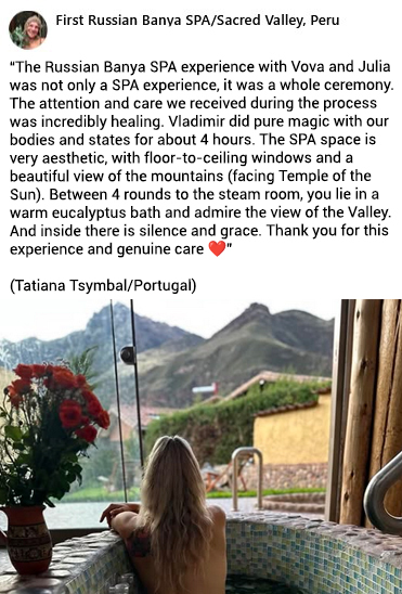 Здесь, в городке Писак, располагается наша баня, в которой объединились традиции целительства со всей планеты: русские, тибетские, перуанские. Магия гор, ветра, воды, огня, земли — очищает, наполняет, лечит тело и душу.